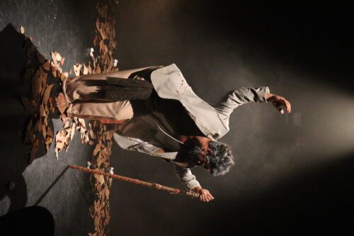 O espetáculo também transita pela espiritualidade, invoca a sabedoria dos ancestrais e, claro, Ricardo é coroado com a bênção desses elementos. Eu creio nisso. Ricardo brinca entre um personagem e outro. Um deles parece o malandro, e o outro, um preto velho, cuja idade dobra-lhe a coluna. Cada suor que brota dos poros do ator é a chancela de um esgotamento físico ao exercitar o seu personagem, o ofício do ator, que se deleita em fotografias cênicas de mais alto nível: mãos que tremem, coluna cansada de um preto velho sábio, que vê a vida com deiscência e valores primordiais para cada um de nós.