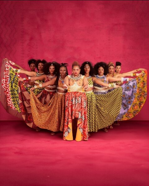 A saia monumental criada por Wanderley Gomes é um deslumbre, um acontecimento à parte. Como homem negro, quis dar à rainha o seu lugar de visibilidade — e deu. Uma saia imensa cobria a atriz, enquanto o corpo de dança a movimentava por baixo, criando imagens raras no teatro. Para mim, foi como uma coroação, carregada de significado.