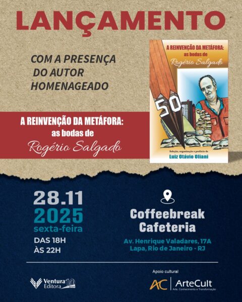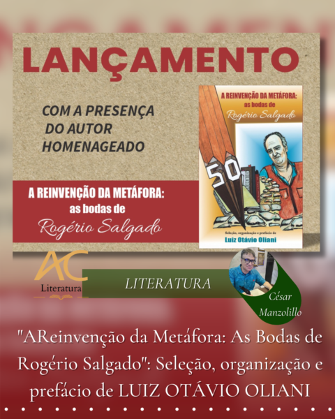 “Ao escrever esta orelha para o livro A reinvenção da metáfora: as bodas de Rogério Salgado, com poemas cuidadosamente escolhidos pelo também poeta Luiz Otávio Oliani, busquei uma antiga entrevista de Paulo Leminski. Nela, o curitibano dizia: “Aos 17 anos, qualquer um é poeta. Homem ou mulher. Quero ver o poeta continuar fazendo poesia aos 25, aos 30, aos 40, aos 50 ou sessenta anos. Quando as preocupações da vida são bem mais urgentes que a poesia.”Ao escrever esta orelha para o livro A reinvenção da metáfora: as bodas de Rogério Salgado, com poemas cuidadosamente escolhidos pelo também poeta Luiz Otávio Oliani, busquei uma antiga entrevista de Paulo Leminski. Nela, o curitibano dizia: “Aos 17 anos, qualquer um é poeta. Homem ou mulher. Quero ver o poeta continuar fazendo poesia aos 25, aos 30, aos 40, aos 50 ou sessenta anos. Quando as preocupações da vida são bem mais urgentes que a poesia.” Muitos começam, poucos continuam. Rogério Salgado continuou. Ao longo de cinquenta anos de estrada, atravessou tempestades: a desvalorização do livro em um mundo pautado por likes e visualizações, a ignorância persistente nos “donos do mundo”, que governam sem leitura, o desinteresse que tantas vezes sufoca a palavra poética. Apesar de tudo, o poeta acreditou. Escreveu letras de música, publicou mais de trinta livros individuais de poesia, colaborou com jornais e revistas. Criou a revista Arte Quintal; em parceria com Virgilene Araújo, criou o Belô Poético; saiu de Campos dos Goytacazes, Rio de Janeiro; fez história em Belo Horizonte. Tanto construiu sua obra quanto abriu caminho para o surgimento de vozes de várias gerações. Rogério sabe, com a lucidez dos grandes, que a poesia é uma das mais solenes “inutilidades que não precisam se justificar”, como disse Paulo Leminski. Não dá dinheiro, não resolve injustiças, não elimina os problemas do mundo. Mas, como a amizade, o amor, o pôr do sol ou o arco-íris, é impossível viver sem ela. Nos poemas deste livro, o eu lírico transita do íntimo ao coletivo. Às vezes amoroso, saudoso, delicado. Outras vezes político, engajado, resistente. Luiz Otávio Oliani soube, com rara mestria, selecionar versos que não apenas falam, mas dão voz. Se a sociedade tem um grito preso na garganta, se o mundo cruel e capitalista afasta nossos olhos do próximo e do amor, a figura do poeta se torna ainda mais necessária. De minha parte, com orgulho, saúdo esta obra de valor reluzente, feita para durar. Boa viagem aos leitores que se aventurarem por estas páginas.”
