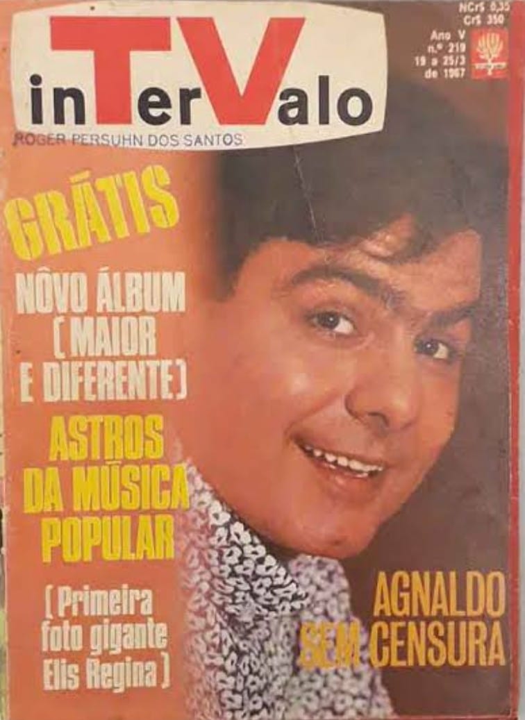 Mas eu chamo a atenção para uma revista semanal, formatinho medindo cerca de 13,5cm x 18,5cm, criada e lançada pela Editora Abril, com circulação de 1963 a 1972: a Intervalo. Segundo pesquisadores, foi a primeira publicação brasileira especializada em televisão, focada nos bastidores, nas telenovelas, na programação televisiva, incluindo filmes, desenhos animados, seriados e programas musicais e de auditório.