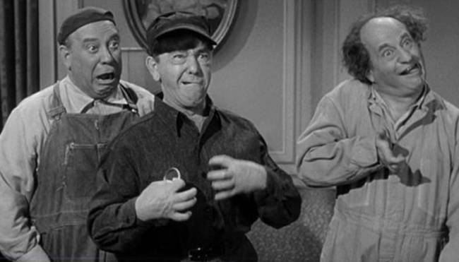 Larry, o segundo Pateta, meio calvo, tinha cabelos enrolados e desalinhados, que faziam volume pelos lados e por trás da cabeça. Mesmo um pouco desengonçado, Larry Fine era o meio-termo do lúcido Moe e dos irreverentes Curly e Shemp. Com o falecimento de Shemp, o ator e dublador Joe Besser (“Joe”), menos engraçado em relação aos seus antecessores, foi convidado a compor a terceira formação, encerrando a temporada dos curtas-metragens. Ao todo, Os Três Patetas exibiu 190 episódios, também transmitidos pela TV, o que resultou em uma nova geração de fãs. Quando o trio se dedicou mais à produção dos longas-metragens, foi a vez de Joe DeRita (“Curly-Joe”) substituir Joe, numa tentativa de resgatar o jeito mais caricato de quem atuava como o terceiro Pateta. A fórmula parece não ter dado tão certo quanto os curtas, embora vários filmes tivessem sido realizados entre 1959 e 1970. Um deles, The Outlaws is Coming (Os Reis do Faroeste), de 1964, trouxe no elenco um ator que se tornaria, dois anos depois, um astro da cultura pop: Adam West, o Batman da TV!