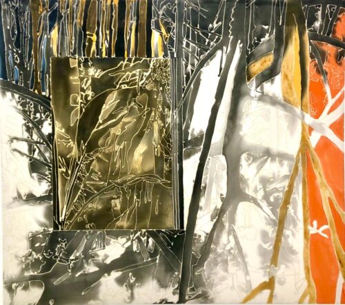 Essa técnica de pigmentação foi apresentada em novo terroir, quando participou de uma residência artística no Château Cos d’Estournel (vinícola de Bordeaux), no primeiro semestre desse ano, como parte da Temporada Brasil-França 2025.