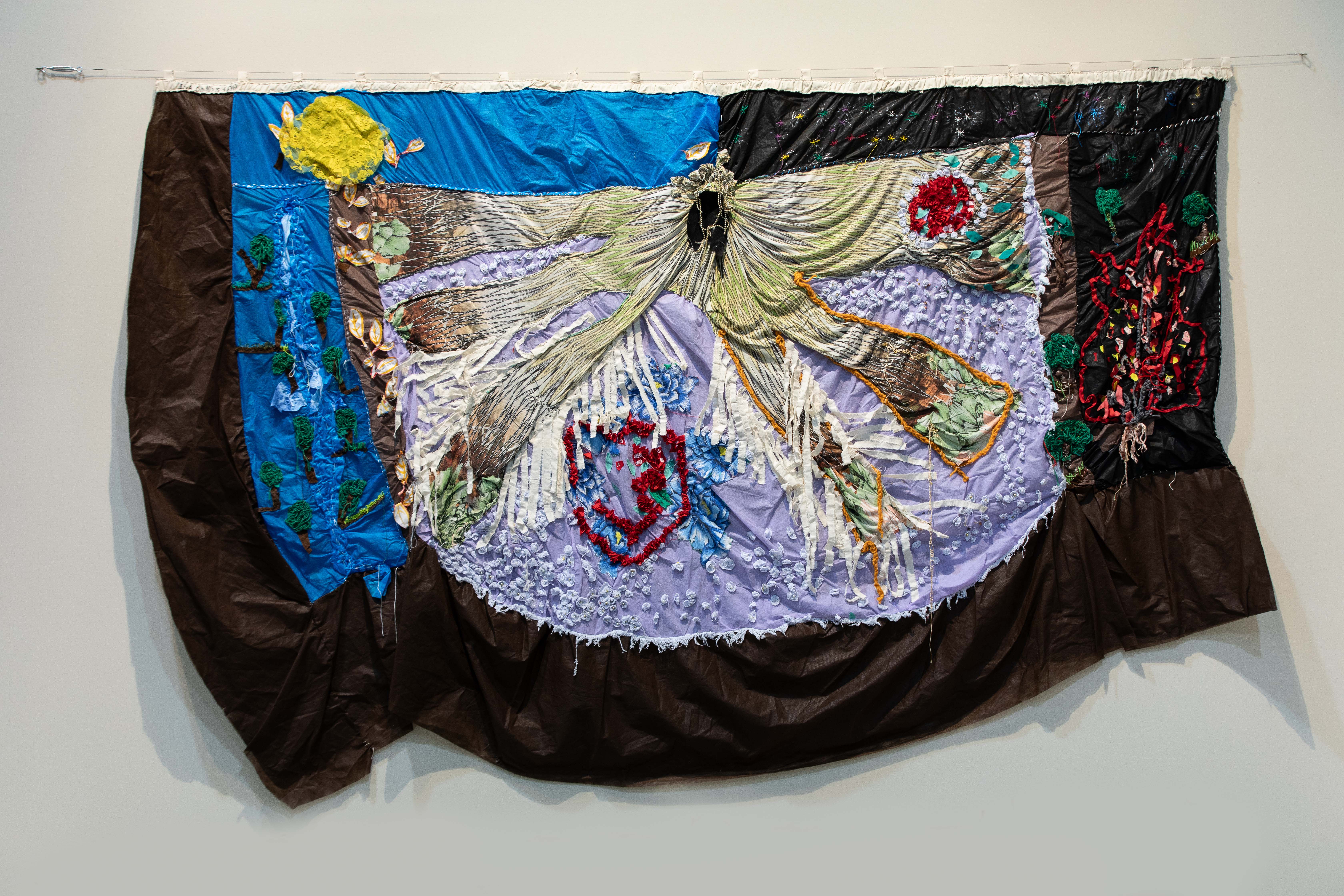 - Isa do Rosário. Omolú. 2023. Bordado sobre TNT. 140X300X5cm