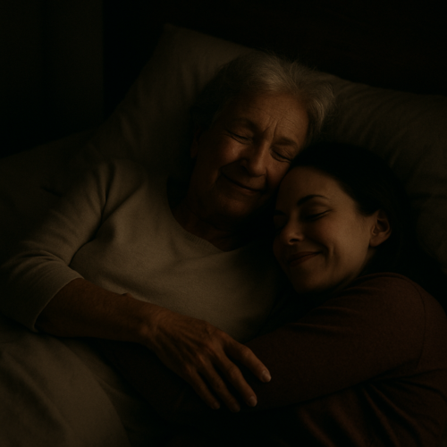 O desamparo da mulher, no meio da noite, naquela casa estranha, onde morava a vida inteira. Seu nervosismo impedindo identificar a filha que amava há décadas. O corpo preso ao catre, achando uma forma de entregar-se em confiança. Diante de seu espírito perdido, a filha se amaternou.