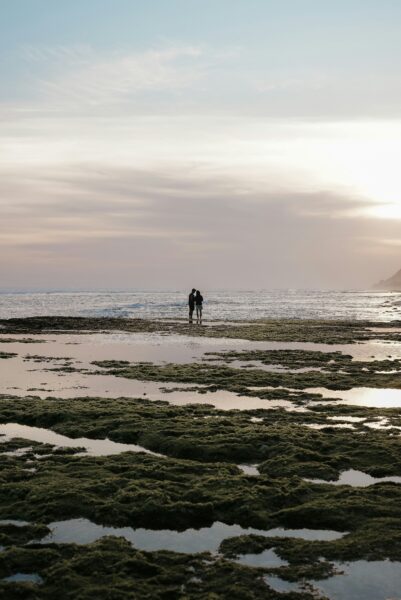 Antes de a cascata de luz tocar a areia da praia, estamos entrelaçados: histórias, lábios, coragens. De que teríamos medo se atravessamos o pior? Se aprendemos a curar a ressaca de viver? No fim do beijo, você me prende junto ao corpo. Não escaparei. Não partirá. Deixaremos a roupa à beira das ondas, a alma vestida apenas da pele, o coração exposto em intimidade. Antes de entrarmos no mar, mergulharemos em nós.