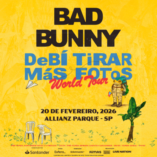 Após o sucesso de seu álbum aclamado pela crítica, o vencedor de três GRAMMY® e onze GRAMMY® Latino, Bad Bunny, anuncia oficialmente sua turnê mundial “DeBÍ TIRAR MáS FOToS”. A turnê de 23 datas em estádios começará na sexta-feira, 21 de novembro de 2025, em Santo Domingo, República Dominicana, com paradas na Costa Rica, Colômbia, México, Peru, Chile, Argentina, Brasil, Austrália, Japão, Espanha, Portugal, Alemanha, Holanda, Reino Unido, França, Suécia, Polônia e Itália, antes de terminar na Bélgica em 22 de julho de 2026. A apresentação do Brasil acontece no dia 20 de fevereiro de 2026, em São Paulo, no Allianz Parque. Os ingressos para o show no Brasil, realizado pela Live Nation e Rimas Nation, estarão à venda para o público geral na sexta-feira, 9 de maio, em www.ticketmaster.com.br. Haverá pré-venda para clientes Santander Select e Private no dia 7 de maio e pré-venda para demais clientes Santander no dia 8 de maio (mais informações abaixo).