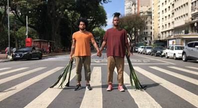 Wellington Julio e João Petronílio na intervenção “Cambone”, no centro de São Paulo