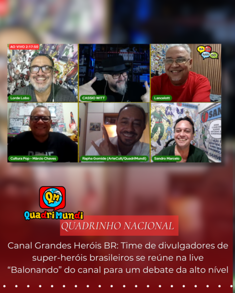 Assim foi esse “encontrão” desse time de divulgadores , que aconteceu na 15ª edição do programa “Balonando” do Canal Grandes Heróis BR (youtube.com/@grandesheroisbr). Um time batizado, durante a divulgação da live do canal, de “Super Divulgadores BR“. Uma mesa-redonda com os mais influentes divulgadores dos super-heróis brasileiros e seus autores!