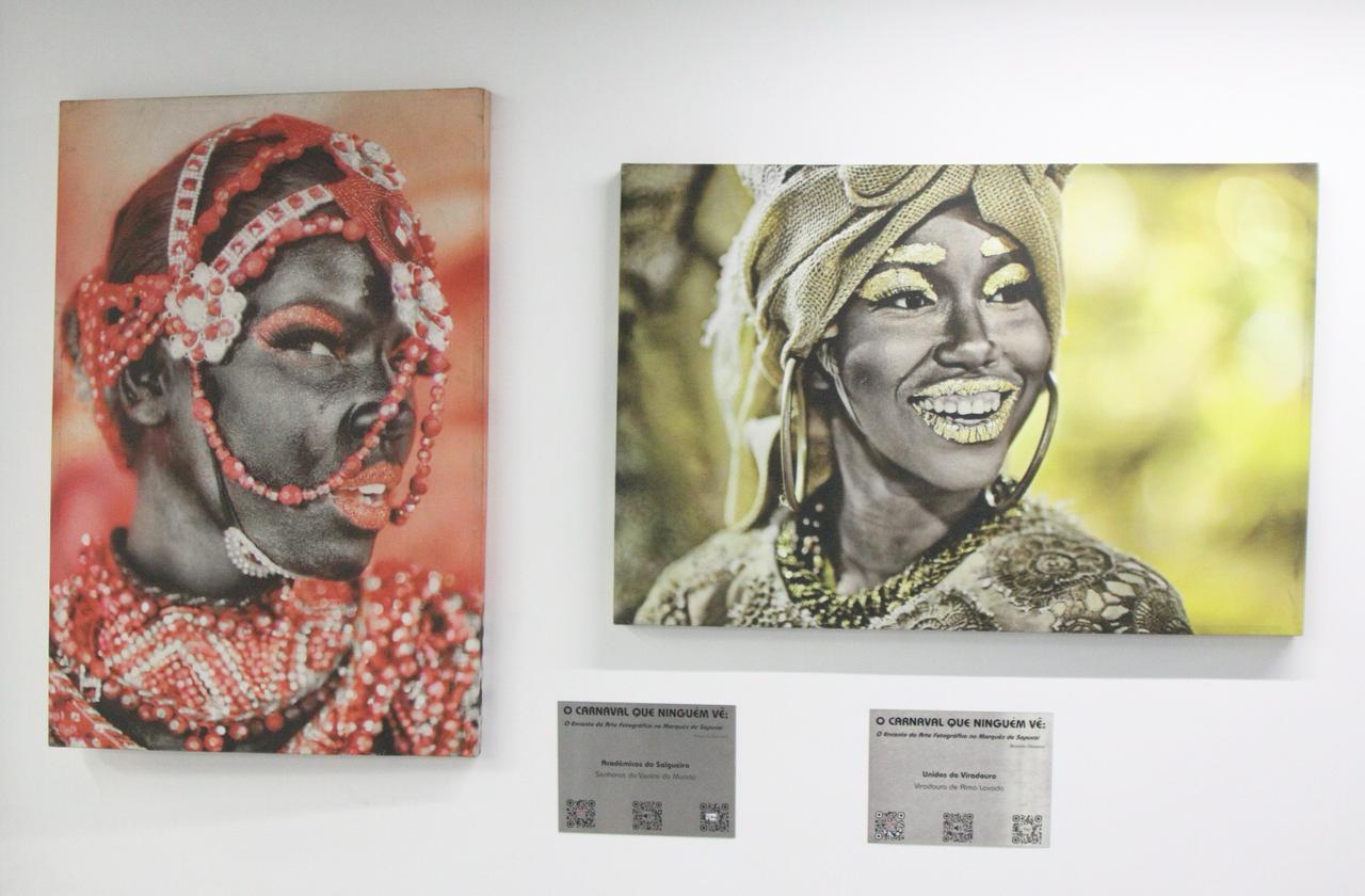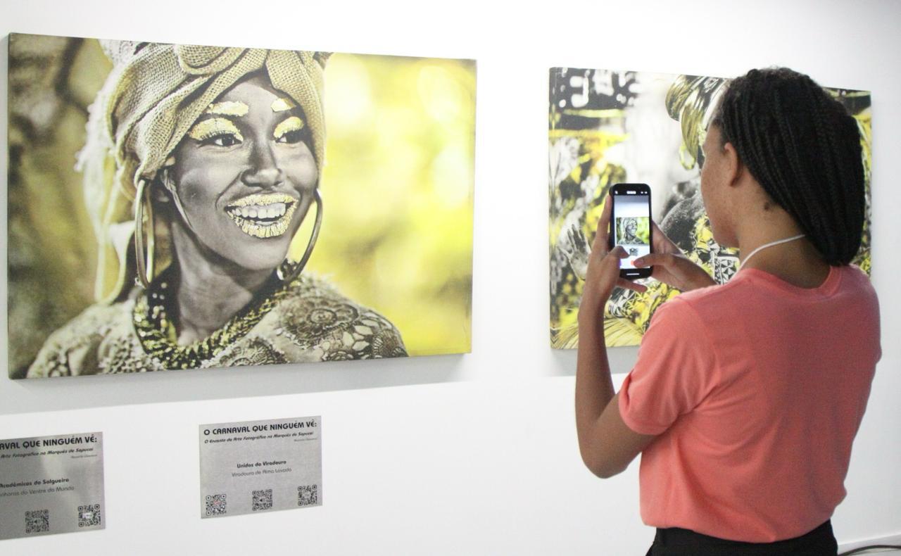 O visitante é convidado a mergulhar em uma experiência sensorial. QR codes junto às obras ativam, no celular, o samba-enredo tocado no momento exato da foto, ampliando a dimensão emocional da imagem.