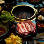 O grande destaque da casa é o chamado Korean barbecue, uma das tradições mais emblemáticas da Coreia do Sul. Diferente do churrasco brasileiro, aqui a experiência é compartilhada de forma ativa: as carnes são preparadas diretamente na mesa, em uma churrasqueira embutida.