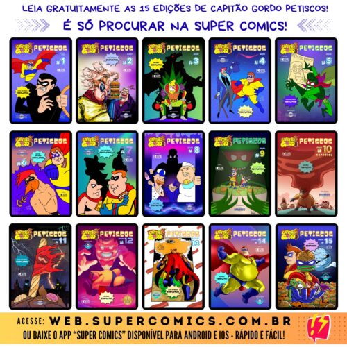 Entre os destaques está “Capitão Gordo – Petiscos”, com 15 edições liberadas gratuitamente. As histórias curtas e bem-humoradas apresentam vilões, situações inusitadas e aventuras que constroem o chamado Gordoverso, em narrativas de classificação livre, ideais para leitores de todas as idades.