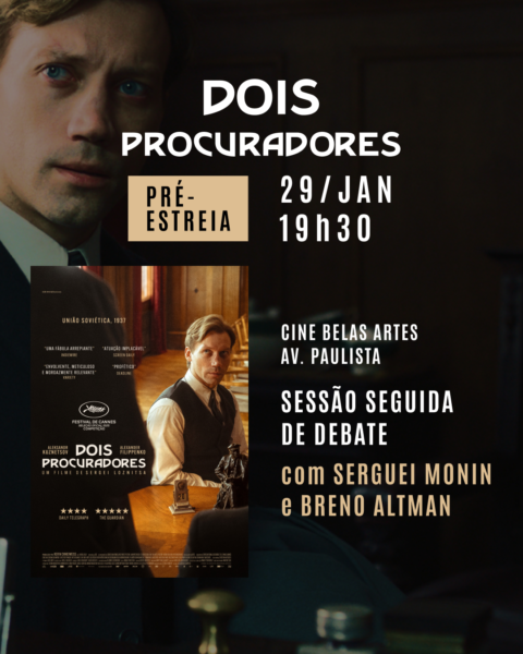 Antes de chegar aos cinemas brasileiros, “Dois Procuradores” terá uma pré-estreia especial em São Paulo nesta quinta-feira, 29 de fevereiro. A sessão se inicia às 19h30, no Cine Belas Artes, e será seguida de um debate com os jornalistas Breno Altman, fundador do Opera Mundi, e Serguei Monin, representante do Brasil de Fato na Rússia. O público já pode garantir seus ingressos através deste link. O drama histórico contextualizado na União Soviética, em 1937, marca o retorno do prestigiado diretor ucraniano Sergei Loznitsa à ficção. O filme entra em cartaz no dia 5 de fevereiro.