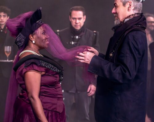 Gostei do figurino da assinatura quanto ao figurino da Maria Callou. De um tempo para cá, percebo a necessidade do figurinista diminuir o valor do material para montar as indumentárias, recorrendo aos brechós, por exemplo. Acho bacana a ideia, no entanto, pôr o traje sem transformação torna-se um equívoco, empobrece o espetáculo. E não tenho certeza, mas vi roupas usadas, porem a figurinista recorreu a pedrarias, rendas e crochês, nos levando ao reinado que Shakespeare imaginou. Gostei bastante. Ainda mais com o cuidado das caracterizações da Mona Magalhães, uma característica do diretor. Estão sempre maquiados, “Tartufo”, “Pedrinha Miudinha”, “A revolução dos Bichos”, as caracterizações são sempre excelentes e contribuem enriquecendo muitíssimo os trajes.