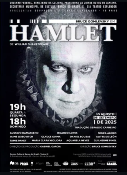 A peça “Hamlet” da Cia. Teatro Esplendor está em cartaz no CCBB Rio de Janeiro, com temporada até o dia 8 de setembro. A montagem, dirigida por Bruce Gomlevsky, celebra os 15 anos da companhia e traz uma nova tradução de Geraldo Carneiro. A peça explora a história do príncipe Hamlet, que busca vingança pela morte de seu pai, e promete uma experiência imersiva para o público.