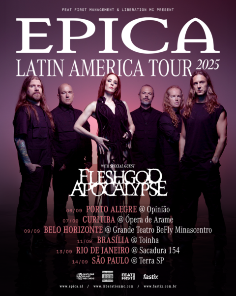 A aclamada banda holandesa de metal sinfônico Epica volta à América Latina em setembro de 2025 com 13 datas, sendo seis shows no Brasil, com realização da Liberation Music Company.