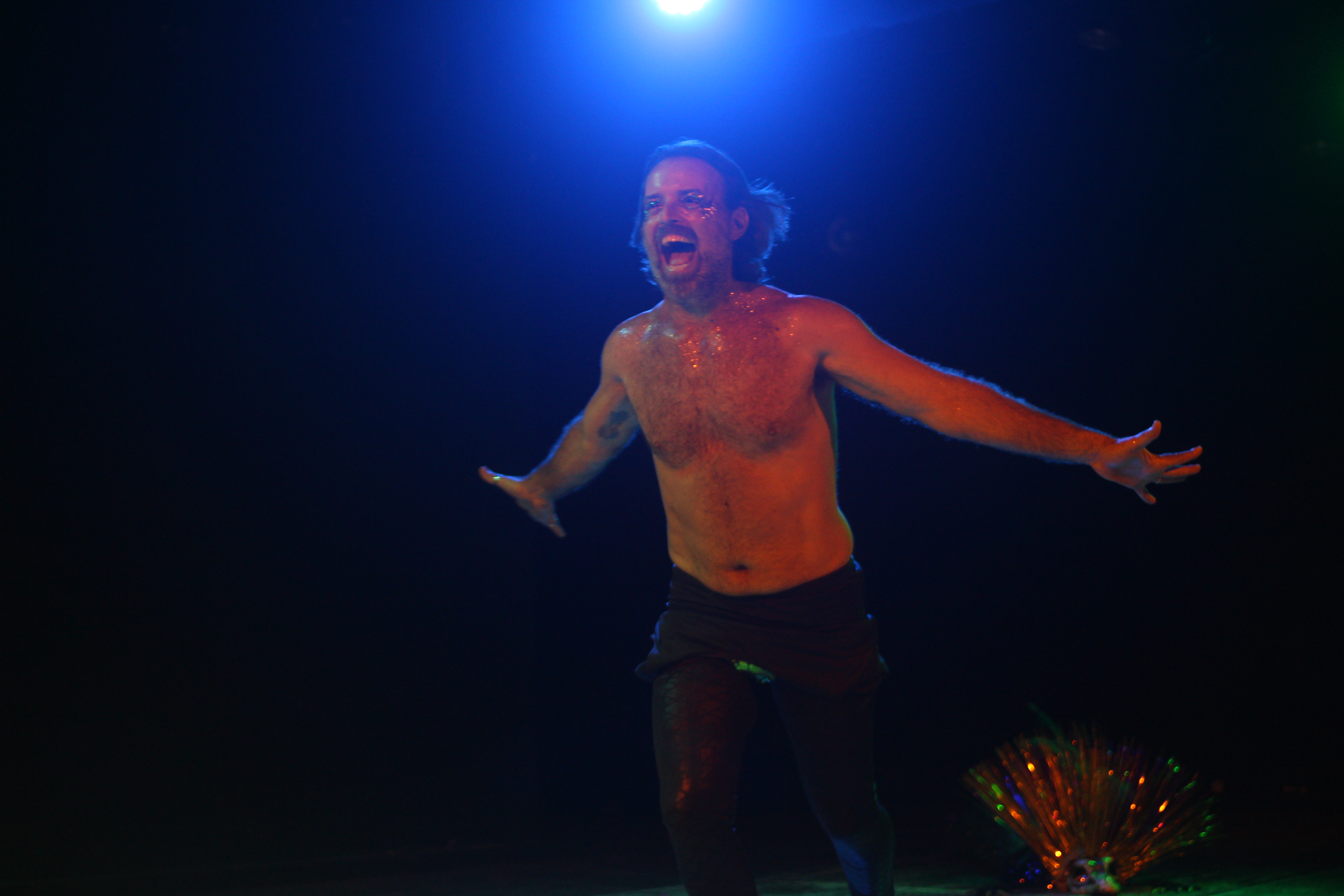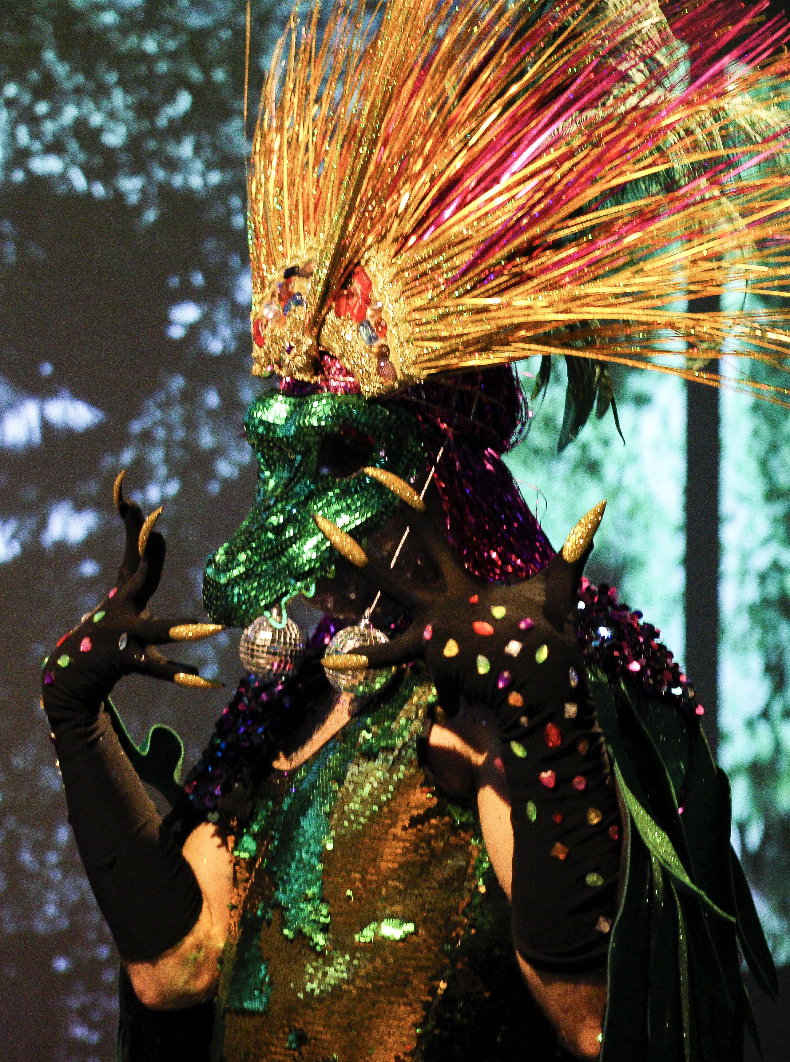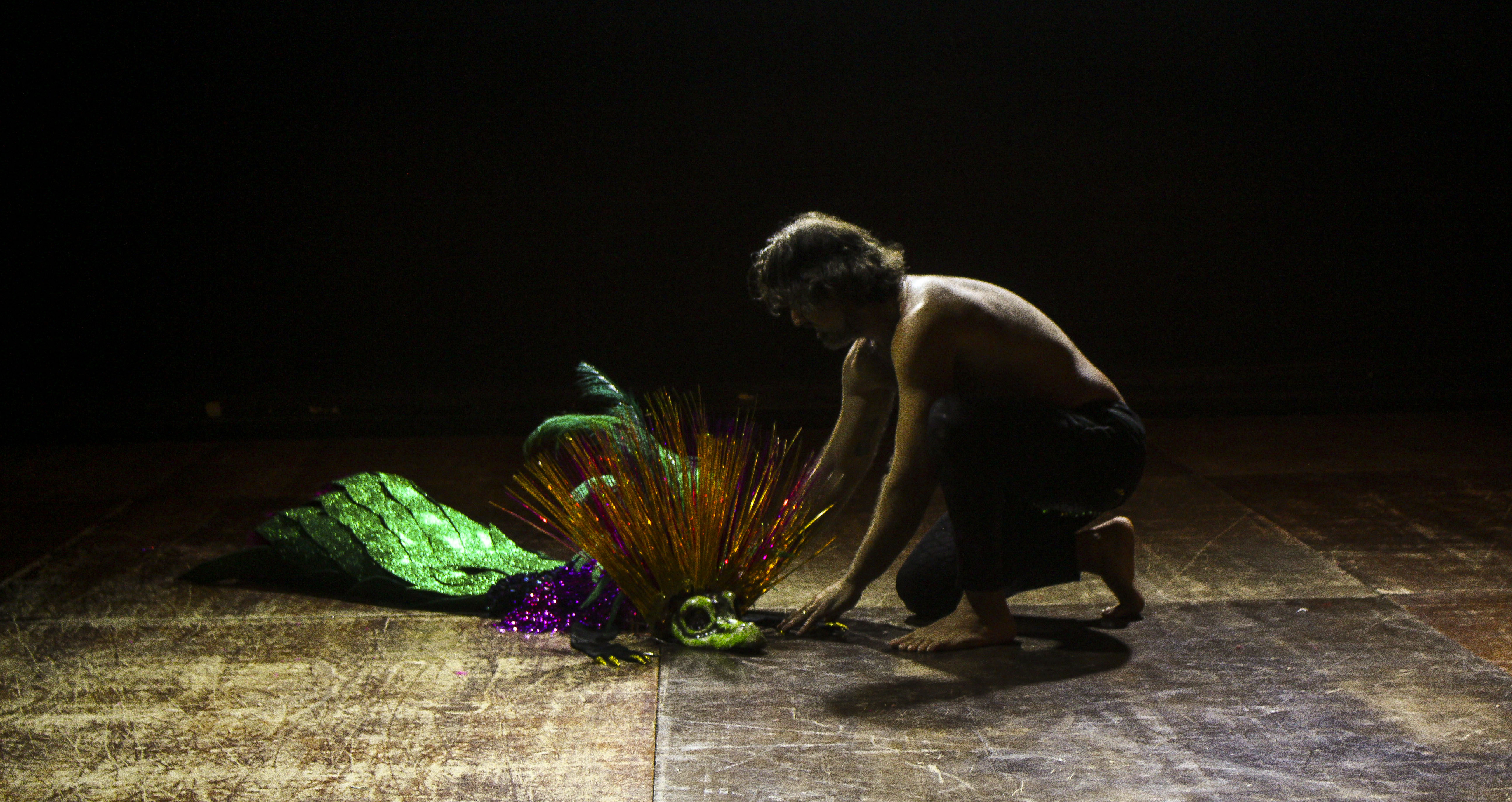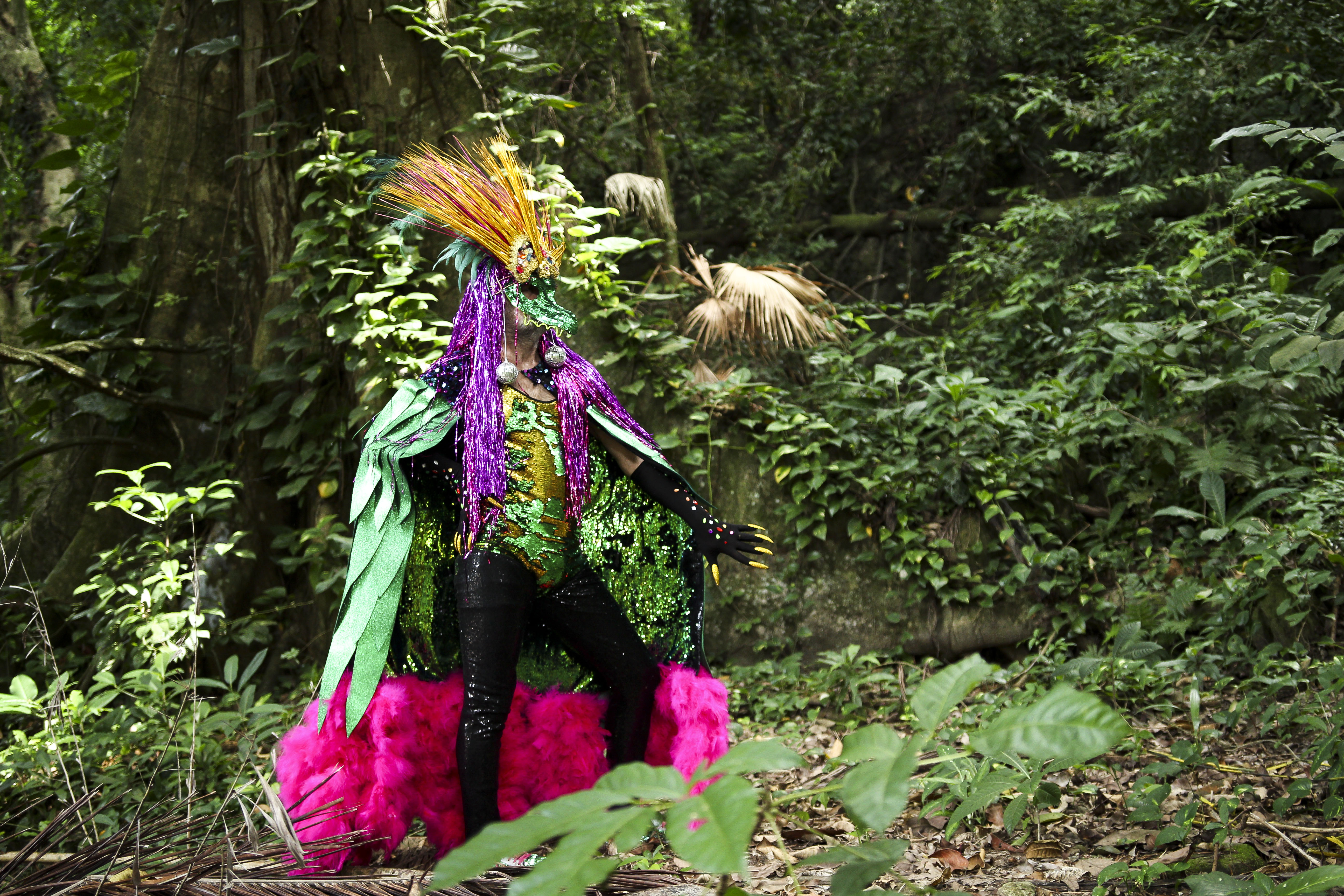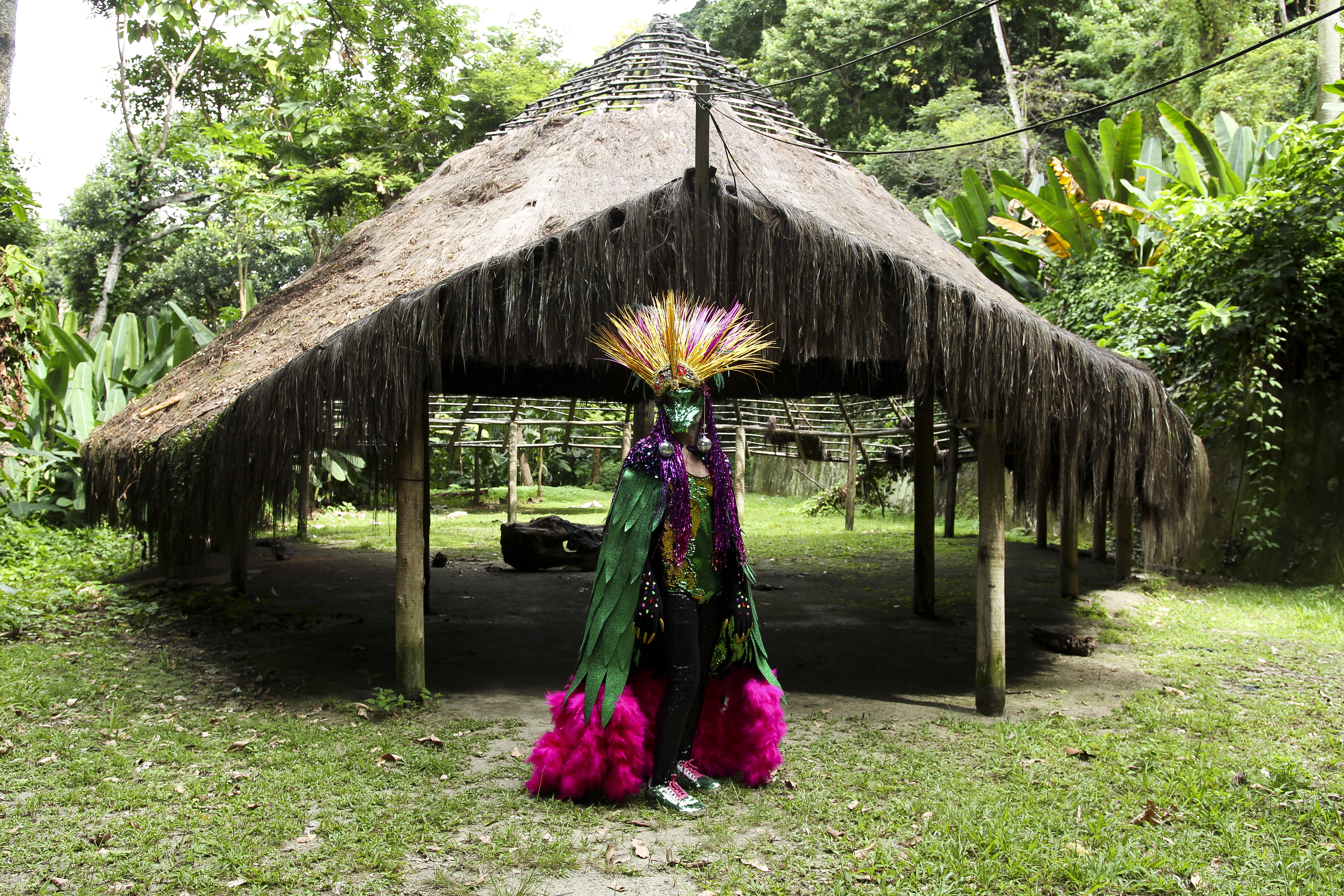 “Durante o desenvolvimento do CASA COMUM, vivendo uma residência artística de um mês na Amazônia — entre rios, florestas e cidades —, atravesso uma navegação de um dia inteiro com o povo Sateré-Mawé. É nesse estado de escuta profunda, entre o real e o mítico, que surge o insight: a Cuca. Não como a figura do medo infantil, mas como um visage, uma ponte entre mundos, entre o planeta e o universo mágico do carnaval, como um possível lugar de fala. Dessa forma, para mim, ela passa a encarnar o espírito do carnaval da Estação Primeira de Mangueira — território simbólico afetivo de onde posso puxar o fio das mulheres da minha família, convocar minha avó pernambucana, acessar uma linhagem ancestral feminina e, a partir daí, dialogar com minha filha sobre o futuro que se constrói no agora. A Cuca se materializa pela primeira vez em 2024, no Carnaval do Rio de Janeiro, como figura do carnaval de rua carioca, desfilando nas ruas da cidade pelos arredores da Sapucaí e durante o cortejo do Cordão do Boi Tolo. Ao se trajar de Verde e Rosa, ela carrega as cores do lugar onde cresci, o Maracanã. Minha avó morava perto da Mangueira; essa relação é antiga, afetiva, estrutural. Essa é a Cuca ancestral. Ao encarná-la, invoco minha avó, invoco as mulheres que me antecedem, para falar com Julieta — e falar do mundo. A cada aparição, acompanhada por videomaker e fotógrafa, a Cuca gera material audiovisual e se transforma. Ela é pesquisa viva. Troca de pele. No segundo ano, surge em vermelho: cor do amor de pai para filha, mas também do sangue, da encruzilhada, da escuta e do movimento. A cor de Exu, o dono do carnaval, aquele que pede licença, que abre caminhos, que governa o carnaval e permite a travessia entre mundos. E ela desfila no cortejo do Bloco Tecnomacumba, da artista Rita Benneditto, além de participar também do desfile do Cordão do Boitatá. Esse projeto, que transborda para múltiplas linguagens, encontra finalmente sua forma como uma performance transmídia no Futuros – Artes e Tecnologia, um lugar profundamente ligado à minha trajetória. Voltar ao Futuros para estrear A Cuca tem, portanto, uma dimensão simbólica e afetiva profunda. É a inauguração da Cuca na cena contemporânea carioca, como um espetáculo. É também meu retorno aos palcos como ator, depois de quase quinze anos — meu primeiro solo. Nada poderia ser mais apropriado do que fazê-lo nesse espaço onde arte, tecnologia, memória e futuro se cruzam. Afinal, no fundo, tudo começa — e continua — tentando responder à mesma pergunta: que mundo estamos deixando para quem vem depois? A Cuca, é também sobre celebrar a vida que é passada de geração a geração e a existência. Sobre viver, trocar de pele e gestar mundos. É sobre a responsabilidade de abrir os caminhos pros que vem depois, ocupar os espaços, exaltar a alegria e o amor. Sobre pulsão de vida, beleza, poesia e carnaval. É sobre também reinventar memórias e habitats, e refundar uma sociedade mais igualitária e empática. O projeto se dá em campo expandido e ampliado, esgarçando visões e tensionando lugares pré-estabelecidos.”
