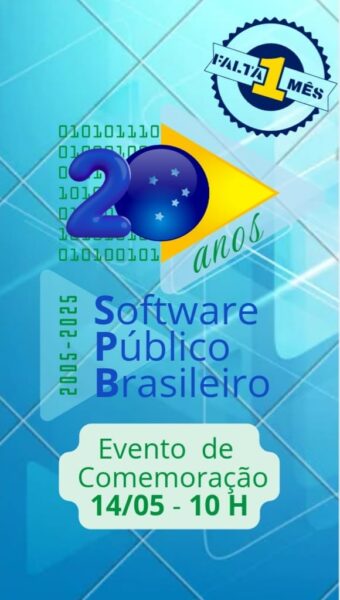 No dia 14 de maio, às 10h, ocorrerá o evento de comemoração de 20 anos do conceito do software público, em evento que conta com apoio de empresas, comunidades, academia e do movimento brasileiro de software livre.