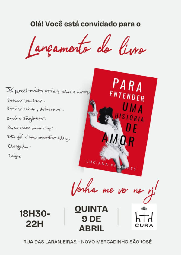 Em “Para entender uma história de amor”, a autora e artista multidisciplinar Luciana Palhares mergulha nas camadas mais íntimas dos encontros e desencontros afetivos. Lançado de forma independente, o livro é escrito em estilo fragmentado, combinando narrativas curtas, ensaios autobiográficos e poesia, numa estrutura que reflete a fluidez das emoções humanas. O lançamento no Rio de Janeiro acontece na quinta-feira, 09 de abril, às 18h30, no Cura Bar, que fica no terraço do Novo Mercadinho São José, localizado na Rua das Laranjeiras. O encontro contará com sessão de autógrafos e conversa com leitores sobre o processo de criação da obra. O evento é aberto ao público e a entrada é gratuita.