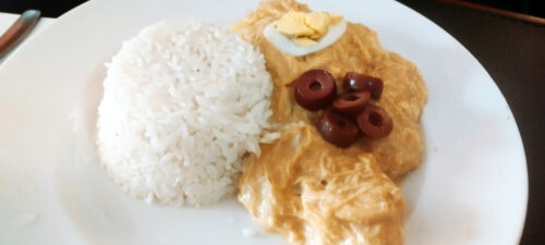 Para o principal, também foram três pratos: Aji de Gallina, um peito de frango desfiado ao creme de aji peruano, acompanhado de batatas cozidas e arroz; Adobo de Chancho, suculento filé mignon suíno, marinado em aji panca, ceveja preta e cebola; e Ajiaco de Papas com Antucho de carne bovina, um guisado de batatas, suave pimenta peruana, ervilhas e queijo, acompanhado de espetinho de carne bovina e arroz.