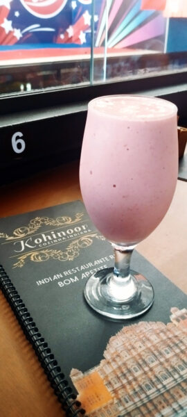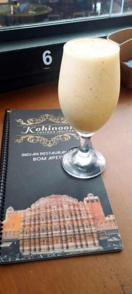 Visitei o KOHINOOR (@kohinoorcozinhaindiana), que fica ali no Shopping Aerotown, na Barra da Tijuca. Comecei, por certo, com uma bebidinha típíca, o Lassi, feito à base de iogurte e especiarias. Esperimentei o lassi de morango e o de manga, que trazia um toque especial de cardamomo.