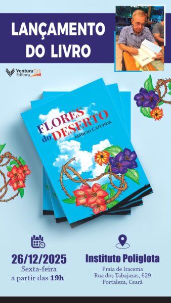 E no próximo dia 26/12, Catunda lançará o livro em Fortaleza (CE) no Instituto Poliglota, Praia de Iracema, Rua dos Tabajaras, 629. Não perca!