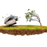 revelando ilhas suspensas onde raízes expostas contam o que permanece