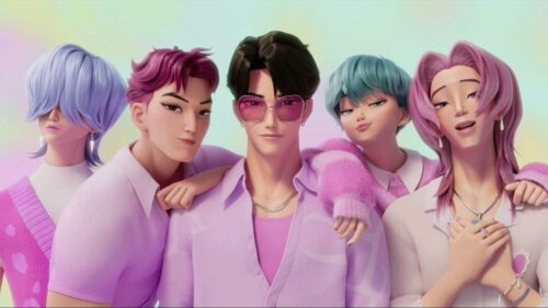 K-dramas e anime. A equipe de animação, liderada por Josh Beveridge, utilizou técnicas híbridas de 2D e 3D para criar um estilo visual único. As expressões faciais das personagens foram cuidadosamente projetadas para refletir características coreanas, proporcionando uma representação autêntica. A estética visual do filme é um dos principais responsáveis por seu apelo global.