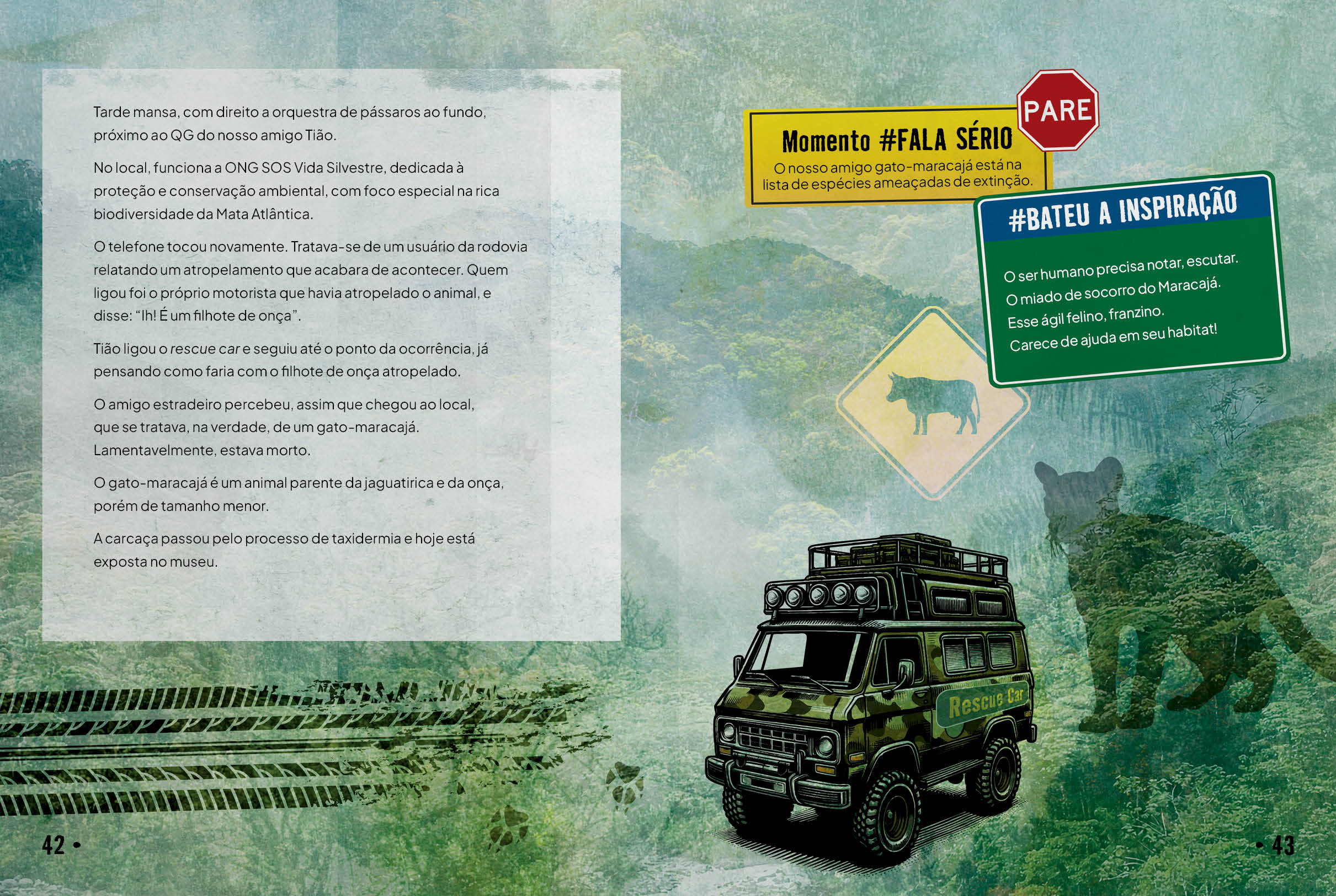 Com 76 páginas de conteúdo envolvente e projeto gráfico de altíssima qualidade, a obra combina literatura, poesia, ciência, aventura e informação, apresentando ao público infantojuvenil histórias reais inspiradas no trabalho de Sebastião “Tião da Estrada” Silvestre, biólogo da ONG SOS Vida Silvestre, cujo cotidiano de resgates é narrado com emoção, humor e profundidade.