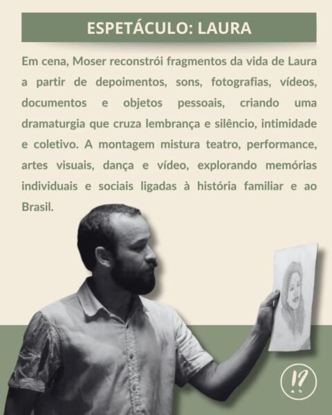 De 6 a 28 de novembro de 2025, a Fundação Nacional de Artes (Funarte) apresenta, na Sala Murilo Miranda do Teatro Glauce Rocha, no Centro do Rio de Janeiro, a temporada comemorativa de “Laura”, solo concebido, criado e interpretado por Fabrício Moser (@briciomoser).