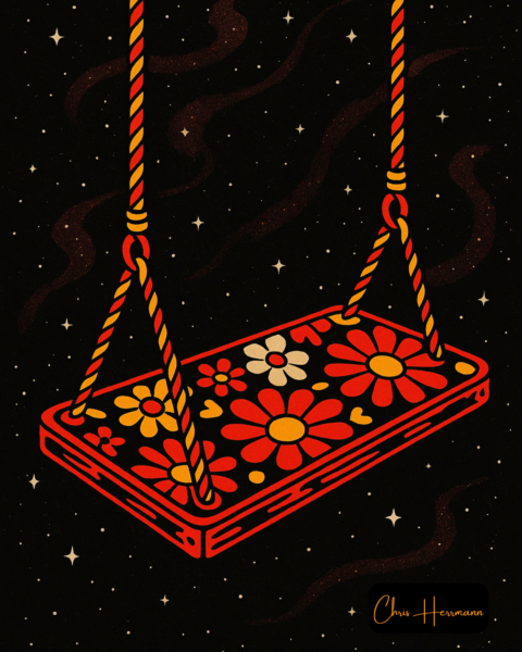 No balanço do tempo, eu me empurro para o alto – e cada flor que nasce em mim acende um pequeno horizonte em algum lugar do cosmos.