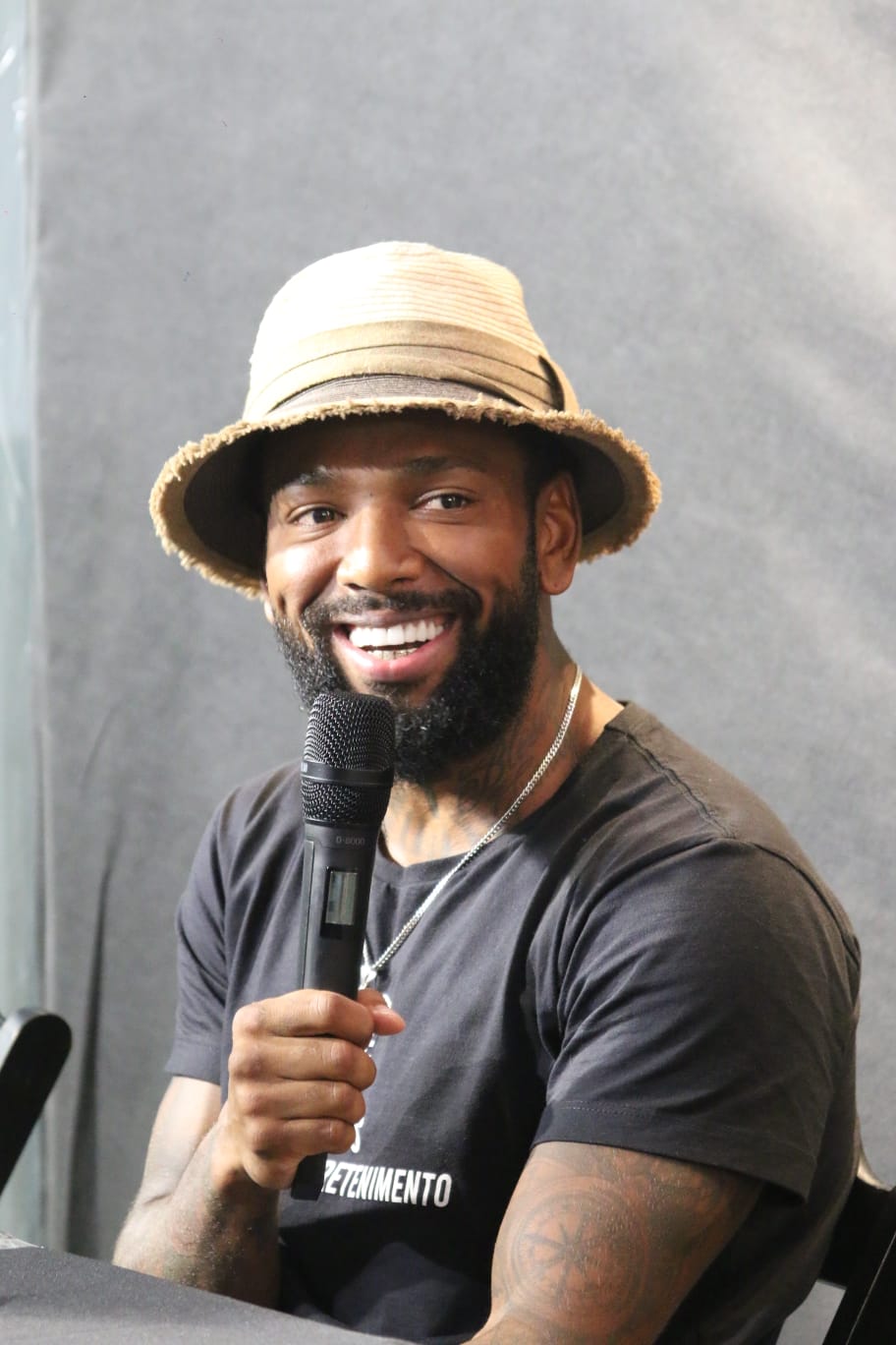 “Nunca senti tanta vontade de entrar na porrada”, disparou o artista durante coletiva de imprensa realizada nesta sexta-feira, 28, no Pimenta Fight Club Praia, na Barra da Tijuca.