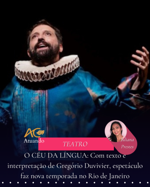 A partir de 7 de agosto, ‘O Céu da Língua’ retorna ao Rio de Janeiro, para curta temporada no Teatro Casa Grande, no Leblon.