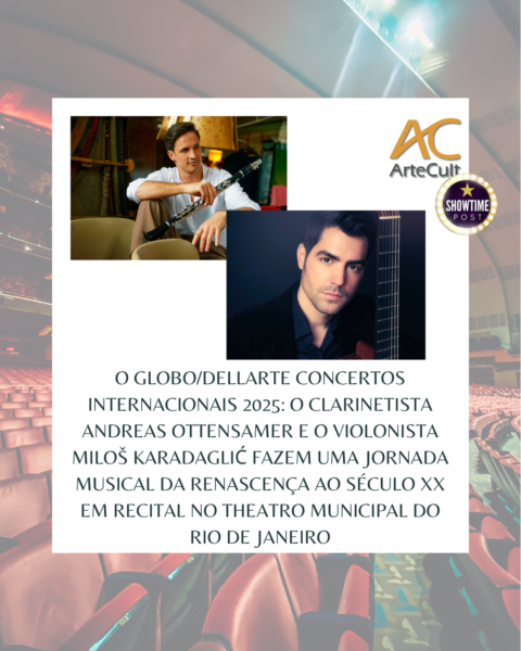 A Série O Globo/Dellarte Concertos Internacionais apresenta no dia 18 de abril, sexta-feira, às 18h, o clarinetista Andreas Ottensamer acompanhado pelo violonista Miloš Karadaglić no Theatro Municipal do Rio de Janeiro. Ottensamer é clarinetista solista da Orquestra Filarmônica de Berlim. MILOŠ é patrono ativo de diversas instituições de caridade que apoiam jovens músicos no Reino Unido e no exterior. Recentemente, lançou a Fundação MILOŠ, sediada em Montenegro.