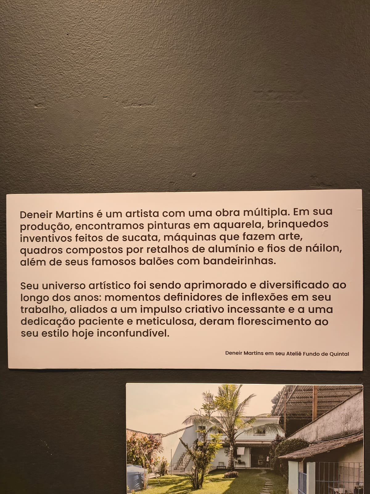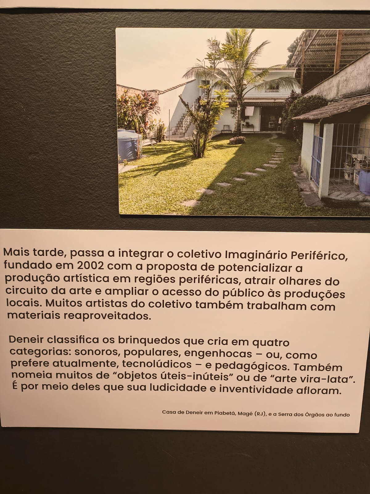 Vistamos hoje o Centro Nacional de Folclore e Cultura Popular (CNFCP/Iphan), localizado no Catete, na zona sul carioca, para conferir a mostra “O universo lúdico e inventivo de Deneir Martins”. A exposição vai até dia 03/12 e integra o programa Sala do Artista Popular (SAP), dedicado a valorizar criadores que dialogam com a cultura brasileira em suas múltiplas expressões.