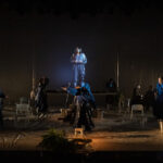 Assim, em “Hip-Hop Blues – Espólio das Águas”, a cena se constrói em fragmentos: chove, os rios transbordam e ocupam São Paulo, reivindicando seus lugares de existência. Em um espaço que remete a um galpão-teatro, artistas refletem, ensaiam e expõem os impasses do presente, em um jogo cênico que fricciona depoimento e ficção. Memorias atravessam a ágora contemporânea, revelando e confrontando estruturas como o racismo, a lgbtqia+fobia, a intolerância religiosa, a supremacia branca e patriarcal, e seus desdobramentos e impacto sobre a realidade cotidiana.