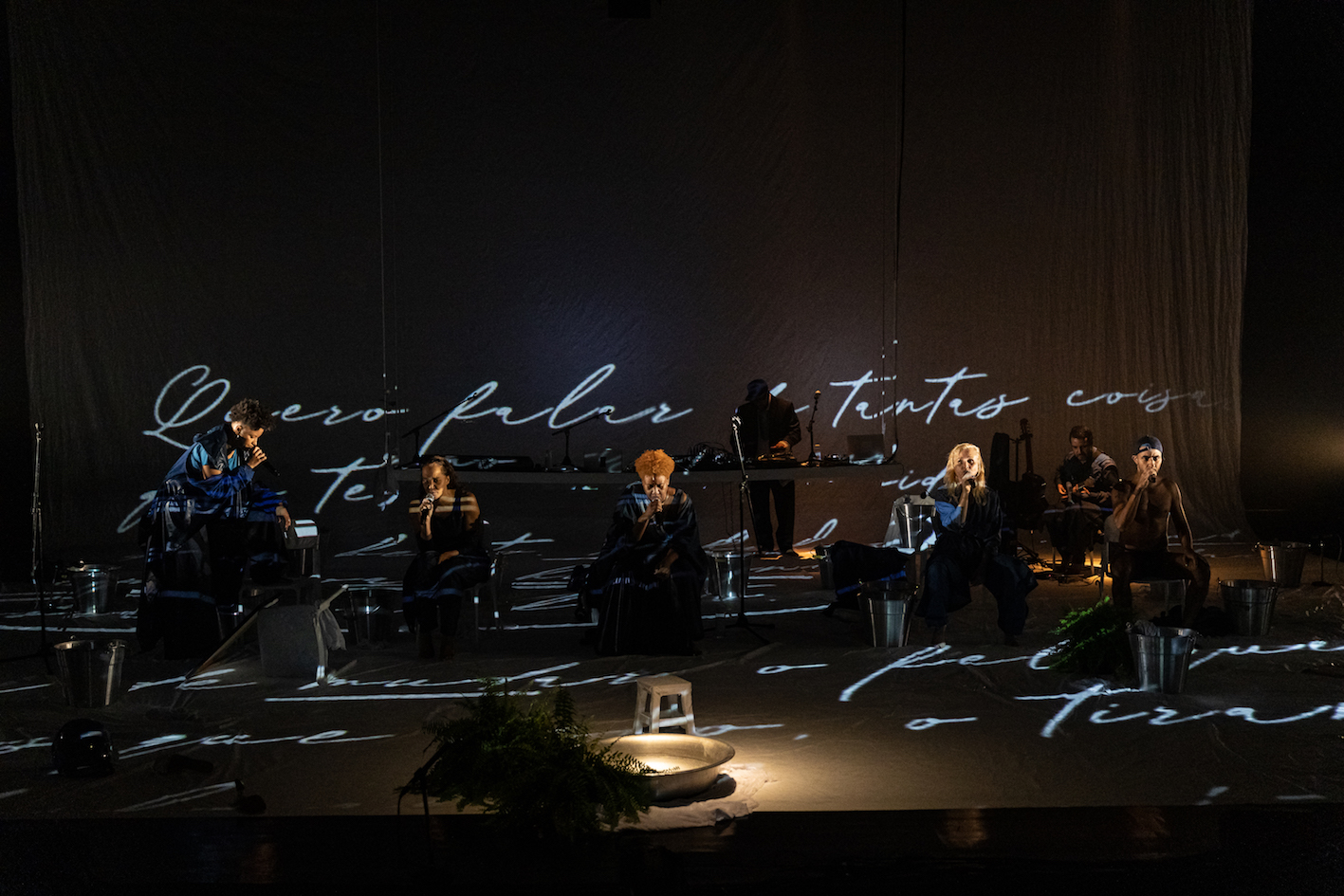 Além dos quatro membros-fundadores do Núcleo – Claudia Schapira, Eugênio Lima, Luaa Gabanini e Roberta Estrela D’ Alva – o espetáculo conta com Dandá Costa, Dani Nega e Daniel Oliva, artistas-aliades que já colaboraram com o coletivo em outras produções. Através da imagem, outras vozes se somam ao trabalho: Adeleke Adisaogun Ajiyobiojo, Aretha Sadick e Zahy Guajajara se apresentam ampliando o discurso do espetáculo, que evoca de forma mais coletiva e diversa a construção de outros imaginários.