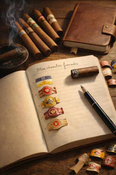 Passei o dia pensando em meus charutos. Há anos os fumo. Guardo um carinho pelas anilhas que os identificam, pelo menos as marcas deles. Pensei em fazer um quadro, colá-los em alguma forma que pudesse organizá-los. Veio-me de novo a ideia de um caderninho.