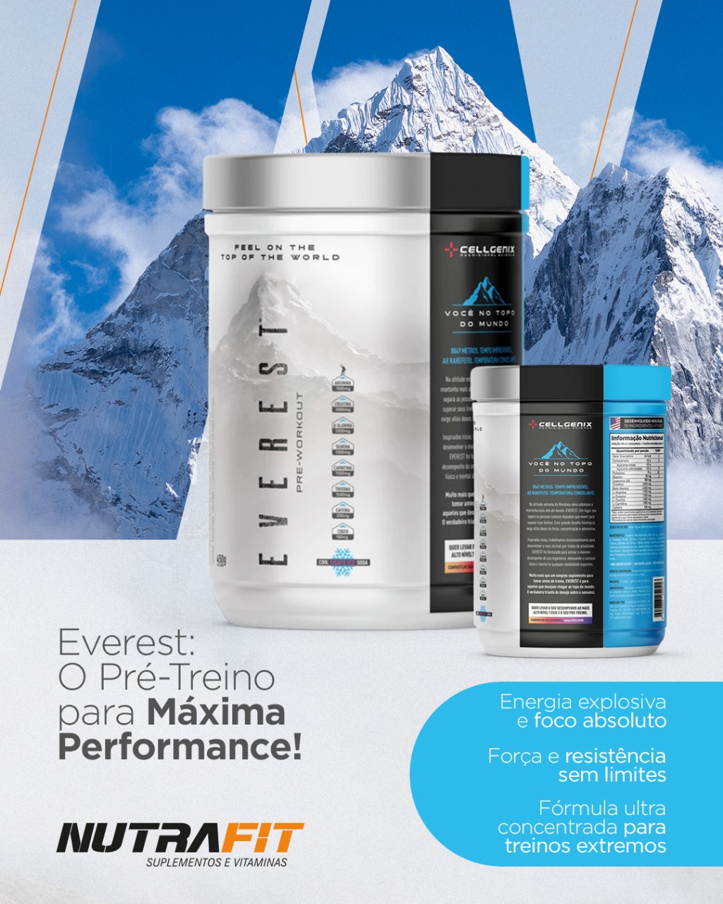 Entre os destaques dessa nova geração está o Everest, da Cellgenix, que se posiciona de forma diferente dentro do mercado. Mais do que um pré-treino tradicional, ele foi desenvolvido como um blend estratégico de performance, pensado para usuários que buscam ir além do básico.