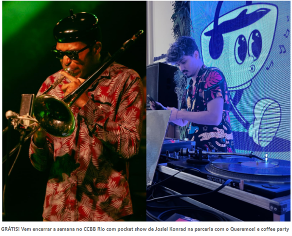 Na happy hour de quinta, 25, o Queremos! no CCBB traz o Jazz da Baixada para o centro da cena com nada menos que um pocket show do trombonista e cantor Josiel Konrad, a partir das 17h30.
