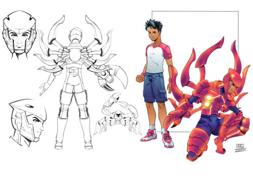 ” Esse mangá estilo brasileiro foi criado alguns anos após o lançamento do primeiro quadrinho do Capitão RED(publicado pela Editora kimera) por volta de 2014 e desde então venho trabalhando na construção dos personagens, estudos de personalidades, narrativas e caminhos a se tomar. Criei os esboços de cada personagem e chamei o incrível DYM para me transpor isso para um traço profissional e saiu um resultado incrível que amei cada um. Após isso ele me apresentou o Felipe Marchioni que fez as primeiras páginas e um pôster especial mas infelizmente não pôde continuar então por longos anos deixei o projeto na gaveta até agora quando resolvemos apostar na marca do Capitão RED para consolidar esse novo rumo do MeuHerói Entretenimento e para isso fechamos uma parceria incrível com o talentoso Kiko Mauriz que vai dá continuidade ao projeto com seu trabalho já consolidado.”