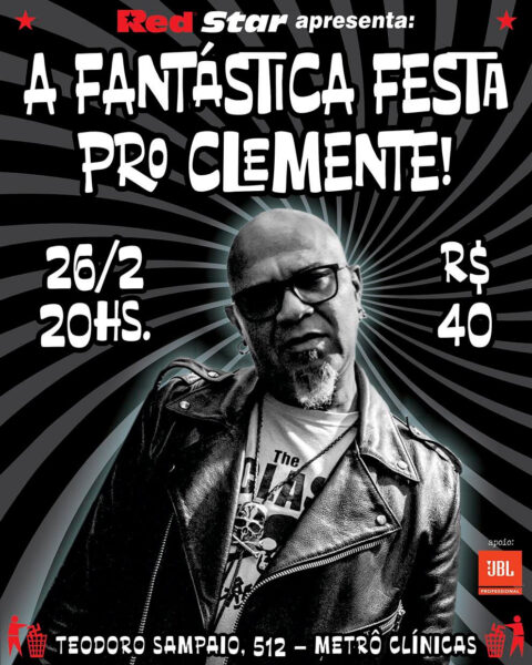 Nesta quinta-feira, 26 de fevereiro, a partir das 20h, a Red Star apresenta A Fantástica Festa Pro Clemente, um evento especial na Rua Teodoro Sampaio, 512, próximo ao metrô Clínicas, em São Paulo.
