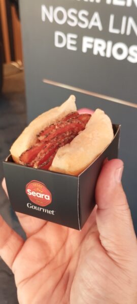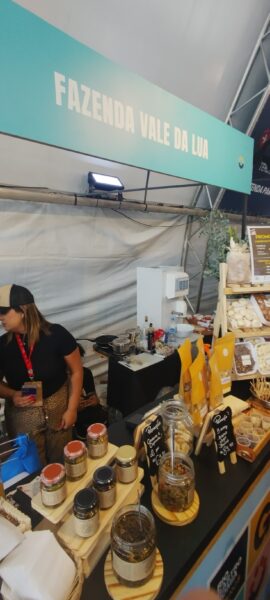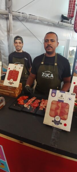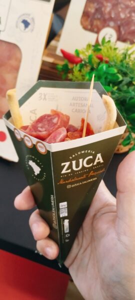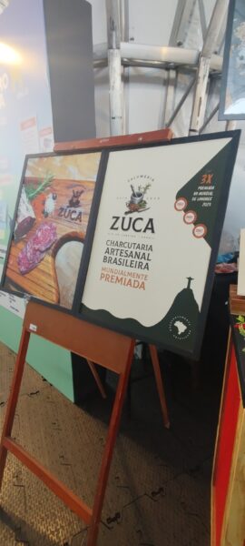 Dali, fui conhecer a ZUCA SALUMERIA (@zuca.salumeria) que, segundo eles me informaram, é a primeira salumeria do Rio de Janeiro. Nascida em Santo André/SP, inspirada na maior escola de charcutaria do Brasil, a Acava Charcutaria, foi a primeira representante do Brasil e da América Latina a ser premiada em um mundial de charcutaria, que aconteceu em Londres no ano de 2023. Deixo aqui minha sugestão: dê um pulo no stand deles pra fazer uma degustação guiada bem interessante e prestem atenção ao “Salame Rosa”, que é feito através de uma copa suína misturada com toucinho e maturado por pelo menos 60 dias.