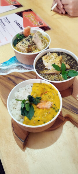 Aqui, teve uma história bastante interessante. O SEBRAE firmou uma parceria com restaurantes do AMAPÁ para trazer um pouco dessa rica gastronomia para o evento, ainda tão desconhecida de nós, aqui do Sudeste.