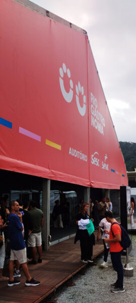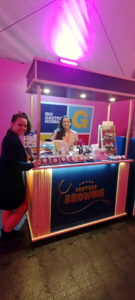São muitas, muitas opções. E pra todos os gostos. E antes de ir para o auditório – sim, já fiz o meu cadastro, que é feito, sempre, com uma hora de antecedência – ainda tive tempo de descobrir uma história bem legal. Ali, no caminho que liga a Tenda Gávea com a Tenda Lagoa encontrei a DOUTORA BROWNIE (@doutorabrownie).