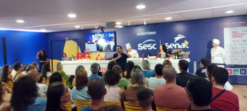 Hora de me dirigir ao Auditório para assistir à palestra “A cozinha brasileira do Almanaque Carioca” com o historiador Thiago Gomide, a chef Gisele Santos e a jornalista Fernanda Arouca.