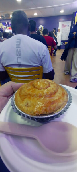Enquanto o Thiago contava curiosidades sobre a Sopa Leão Velloso – dentre inúmeras outras curiosidades – a chef ia nos mostrando como fazer uma empada recheada com frutos do mar, numa alusão à sopa. Ao final da aula, claro, teve degustação.