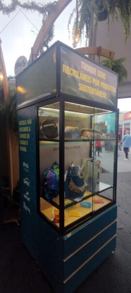Os produtos estarão expostos em uma vitrine instalada no espaço do IFeS. Para participar, o visitante receberá uma cartela para registrar a pontuação obtida com a entrega dos recicláveis. A pontuação varia conforme o tipo e a quantidade de material, com categorias bronze, prata e ouro. Ao atingir a pontuação necessária, o participante poderá escolher um dos itens disponíveis e levá-lo para casa. Todo o material coletado pelo Ifes no evento será doado à Associação de Catadores do Aterro Metropolitano de Jardim Gramacho (ACAMJG), gerando renda aos associados.