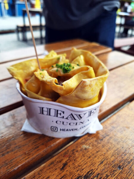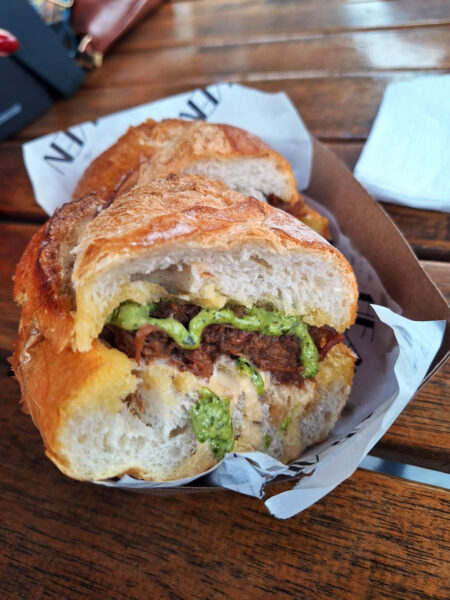 Nessa primeira parada, como sou fã declarado da chef Heaven Delhaye, optei pela HEAVEN CUCINA (@heaven_cucina), com três opções: um Sanduíche de Costela, Gnocchi Fritti r a famosa Lasanha de Costela.