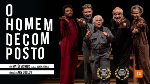 – ATÉ 29 DE ABRIL, “O HOMEM DESCOMPOSTO”, de MATEI VISNIEC. Direção: ARY COSLOV. Com DANI BARROS, GUIDA VIANNA, JUNIOR VIEIRA, MARCELO AQUINO e MARIO BORGES. Local: Teatro Poeira, Botafogo. Terça e quarta, às 20h. R$ 80,00.