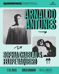 – HOJE, DIA  11 DE ABRIL, A PARTIR DAS 20:30h, dentro do “QUEREMOS! FESTIVAL 2025”, o poeta e cantor ARNALDO ANTUNES lança seu novo álbum de inéditas “NOVO MUNDO”, pelo selo RISCO. O duo SOPHIA CHABLAU & FELIPE VAQUEIRO abre a noite. Local: Circo Voador, Rua dos Arcos s/n, Lapa Ingressos: Ticketmaster.